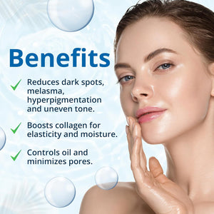 • 𝐄ffectie Dark Spot 𝐓reatment 𝐖ith 𝐏roffesional 𝐈ngredients: Our advanced formula contains effective ingredients: Niacinamide, Alpha Arbutin and Glutathione that works deeply in the skin to reduce dark spots, melasma, hyperpigmentation, pregnancy spots, sun spots, age spots, discoloration, uneven tones on the face and body to give you an even new skin tone.