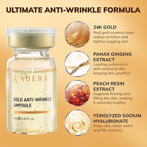• Powerful Anti-Aging Effects: Transform your skin in just 4 weeks with Abera Gold Anti-Wrinkle Ampoule. Our advanced formula delivers up to 5 times the effectiveness in reducing wrinkles, fine lines, and crow's feet. Customers rave about the visible results, making it a must-have for those seeking youthful, radiant skin. Experience the ultimate in anti-aging skincare and see the difference for yourself.